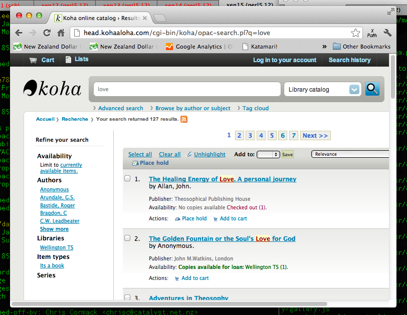 22:55 | 04Bug http://bugs.koha-community.org[…]w_bug.cgi?id=8646 minor, P5 - low, ---, robin, Pushed to Master , Certain search terms cause browser "script taking too long" error | |