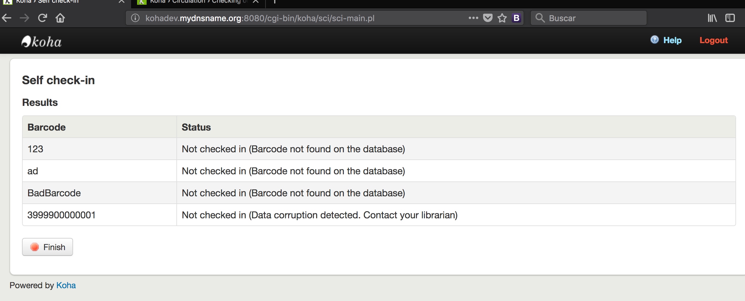 | 11:41 | huginn | 04Bug http://bugs.koha-community.org[…]_bug.cgi?id=17717 critical, P4, ---, chris, REOPENED , process_message_queue.pl: Can't locate Authen/CAS/Client/Response/Failure.pm |